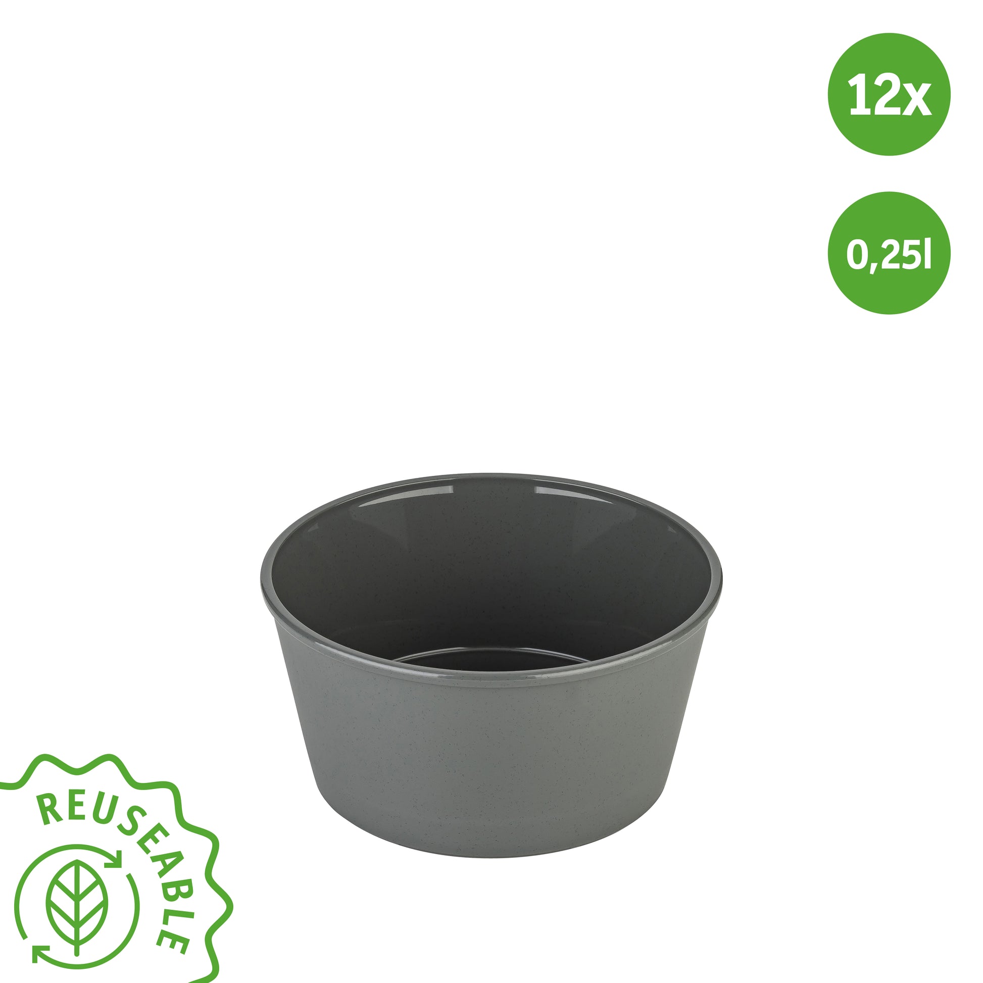 The bowls have optimal nestability and can therefore be stacked very compactly. The individual bowls can still be easily removed from the stack without sticking to each other.
