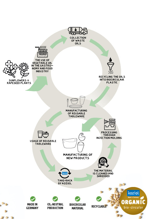 Les produits sont fabriqués à partir de matériau koziol BIO-CIRCULAIRE ORGANIQUE (ISCC Plus), qui peut être facilement recyclé à 100 %.
